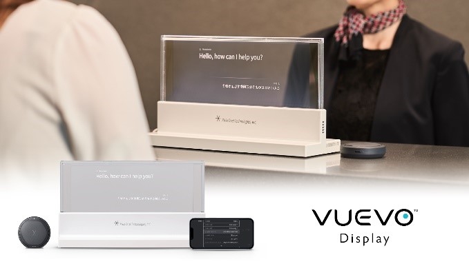 続いてVUEVO Displayについて紹介がありました。VUEVO Displayは聴覚障がい者や難聴者と、受付の方とのコミュニケーションをスムーズに行うことを目的にしています。デフリンピックに選手として出場した学生も参加した、筑波大学での研究をベースに開発を進めたそうです。VUEVO Displayは、受付窓口があるオフィスビル、宿泊施設、商業施設での活用の他、2023年度に開催した「みるカフェ」でもご来場者に体験いただきました。
