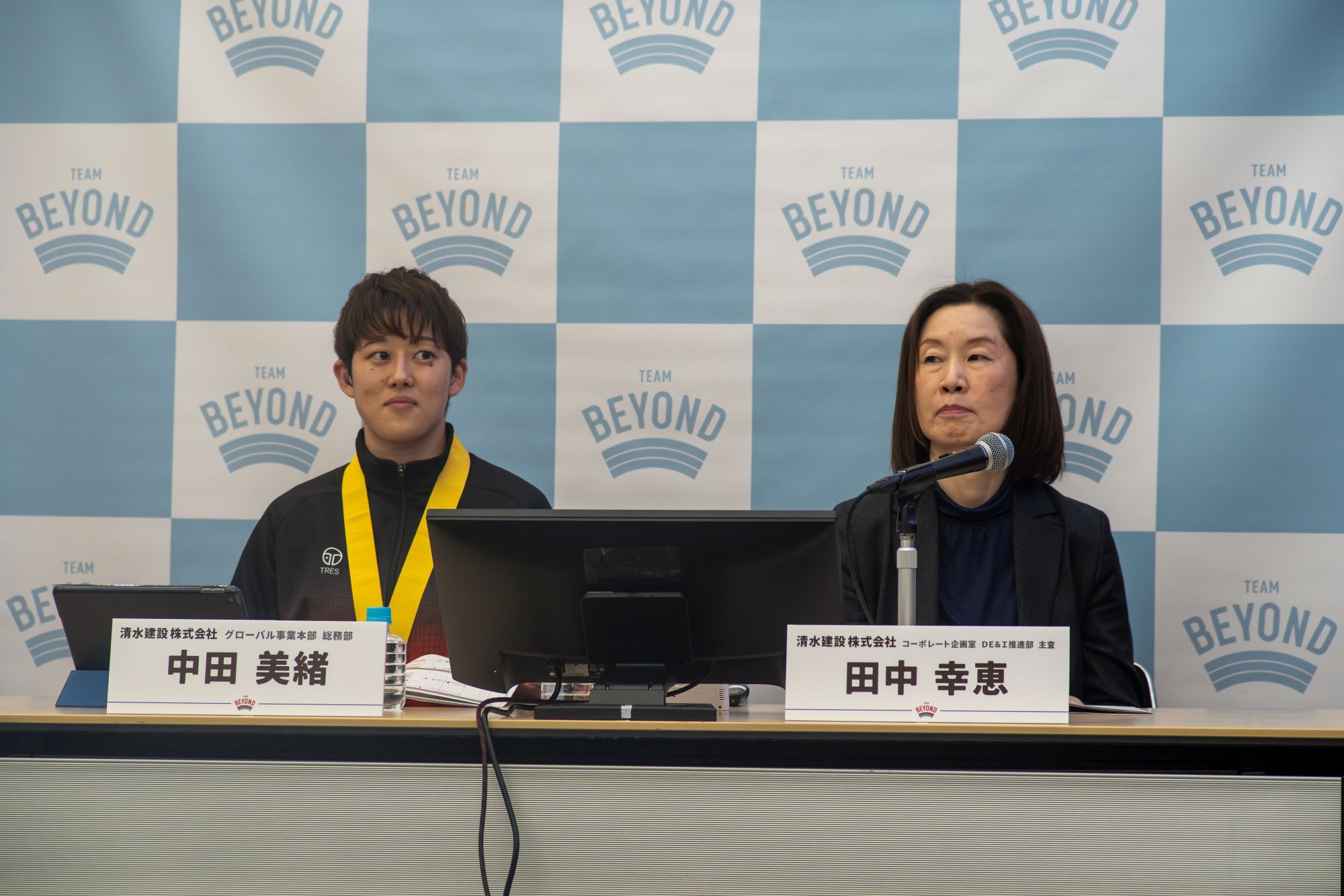 また、練習のある日はフレックス制度を利用し、朝7時半から午後3時まで仕事を行った後に練習していますが、競技と仕事を両立させるデュアルキャリアについては、「競技だけではなく、社会人としての生活を経験できるところがメリットです。上司や同僚と会話することも増えました」と述べました。イベントや講演の依頼も多く、デフアスリートについてだけでなく、清水建設のことを知ってもらう機会にもなっているそうです。