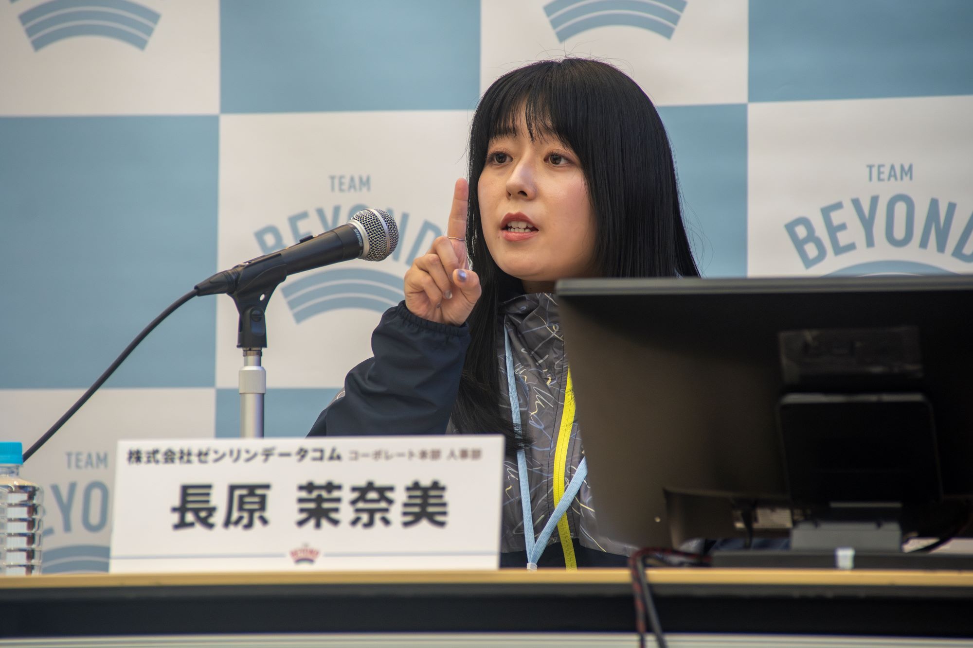 「とても恵まれた環境に置かれていると実感しています。職場の方々にも理解いただいていて、感謝してもしきれないほどです」と語るのは長原選手です。「基本的に平日は9時半 から15時までの時短勤務で、その後は練習やトレーニングの時間に充てています。人事部で新卒採用を担当していますが、業務時間が短い中で効率よく仕事をこなせるよう新卒採用メンバーから仕事を割り振ってもらい、都度対応している」そうです。長原選手は、週末に大会や合宿が入れば、体力回復のために休みにするなどバランスを取りながら働いています。鈴木氏は「業務と競技を両立しながら世界の舞台で結果を残している同僚がそばにいることで、社員一人一人が自身を見つめ直す良いきっかけになる」と述べました。