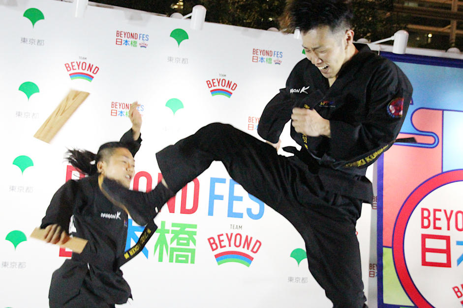 1週間にわたって開催されたBEYOND FES 日本橋。最終日の11月11日(月)にはフィナーレステージが行われました。11月11日はTEAM BEYOND発足からちょうど3周年にあたる節目の日。そんな記念すべき日にふさわしく、オープニングはドラゴンキッカーのみなさんによる力強い演武でスタートしました!
