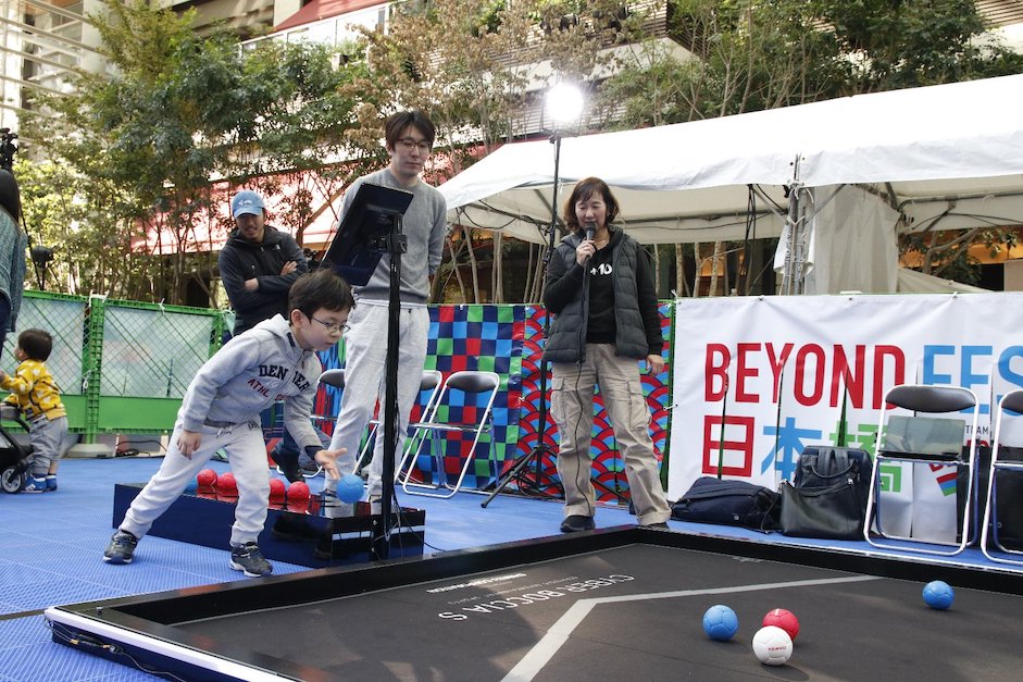 ほかにも、競技用の義足が装着できる「義足体験会」では、支えられながらも初めての感覚を楽しんでいたほか、センサーカメラと大型モニターで対戦データを可視化した「CYBER BOCCIA」では、初対面の相手ともいきなりバトル! 幅広い年齢層の方が、新感覚のゲームを通じてボッチャの魅力を堪能していました。