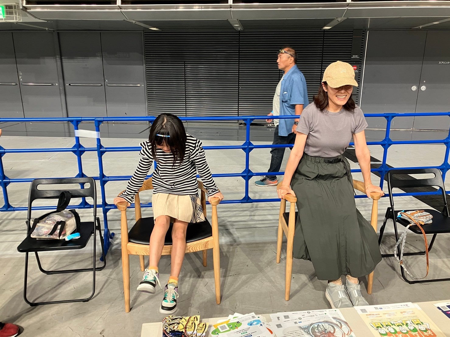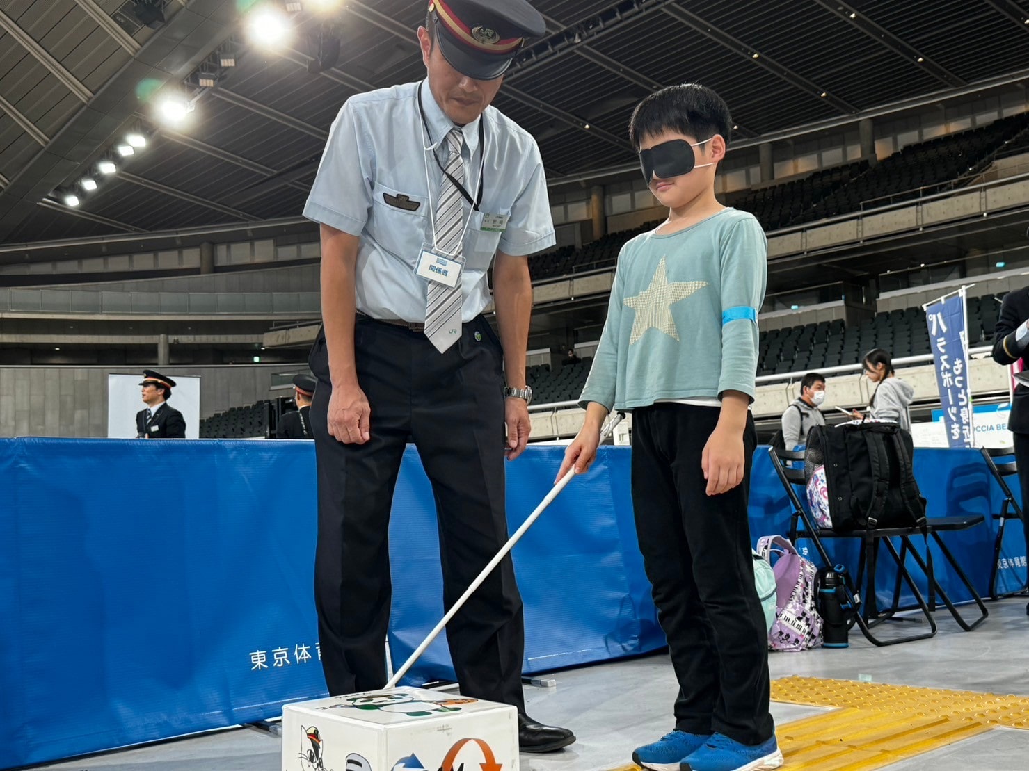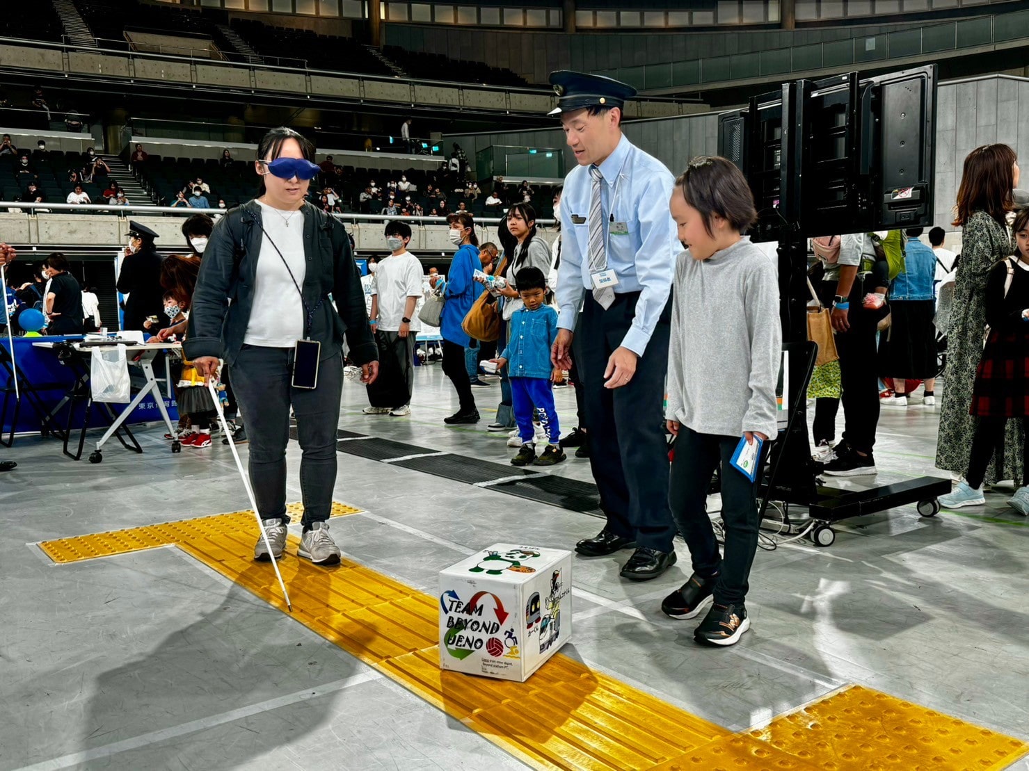 もうひとつは、目隠しした状態での方向感覚を鍛える「目隠し方向あてチャレンジ」。スタート地点で1回転してからまっすぐ3m進んだ先で止まるというシンプルなチャレンジながら、挑戦した参加者からは「目隠ししていると方向や距離の感覚がつかめないことを実感した」等の声がありました。