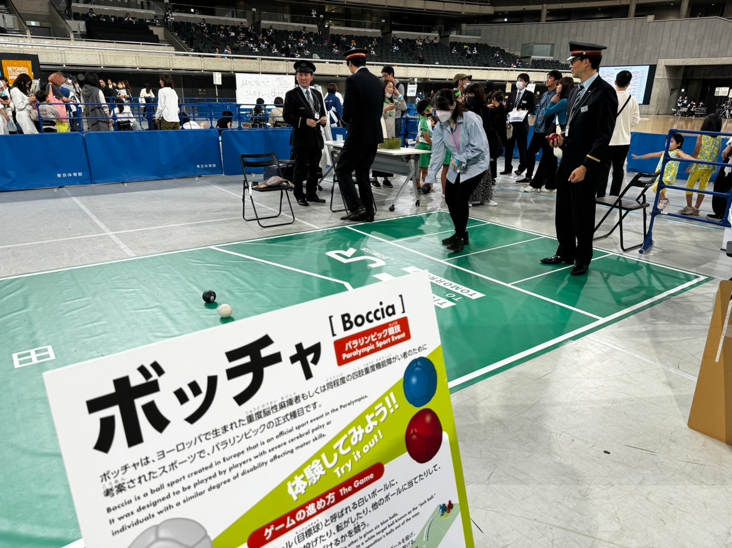 ボッチャエリアはTEAM BEYONDメンバーのJR東日本(上野運輸区)のみなさんにご協力いただきました。JR東日本は一般社団法人日本ボッチャ協会とゴールドパートナー契約を結び、日本代表の支援やボッチャの普及活動を行っています。社内でボッチャ大会を開催したり、体験会や講演会を実施したりするなど、様々な形でボッチャ・パラスポーツを通じた共生社会の実現に取り組んでおられます。