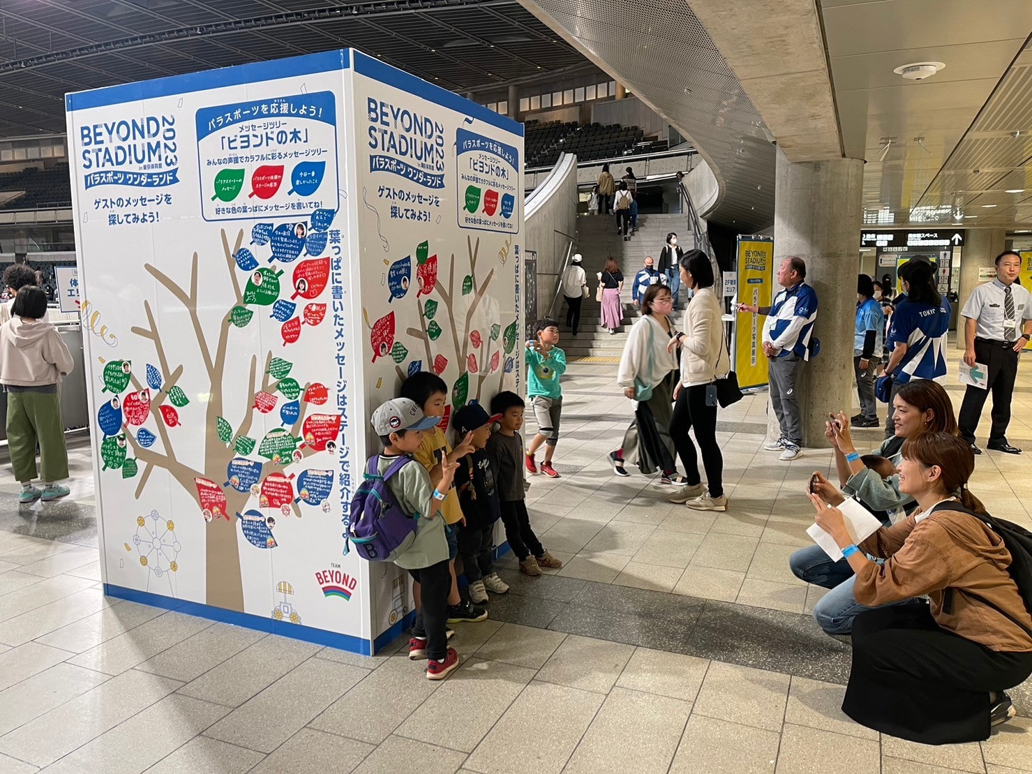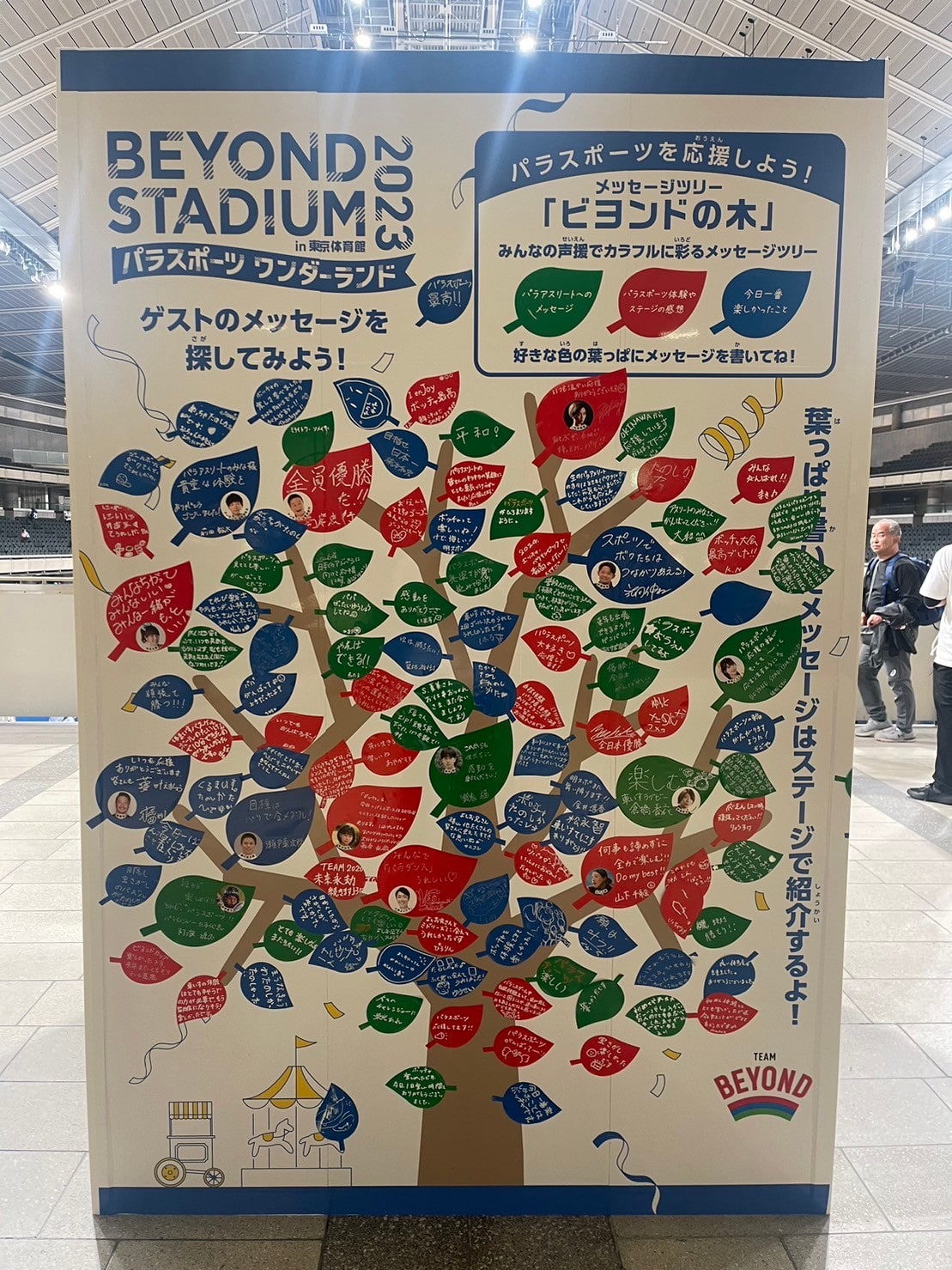 会場エントランスのミュージアムエリアに設置したメッセージボード「ビヨンドの木」には、「体験が楽しかった。またやりたい。」「アスリートのすごさが分かった」「パラスポーツを身近に感じた」など、イベントで感じたことやパラアスリートへの応援など、来場者のみなさんから様々なメッセージが寄せられました。