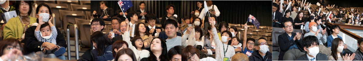 今回は80名以上の方が、観戦会に参加してくださいました。その中で、10年以上も前から車いすラグビー、峰島さんファンだという北澤さんご一家(ご両親と大学2年生のお嬢さん)も峰島さんの近くで試合を観戦。これまで、観戦会に応募しても外れてしまっていたので、今回はなんとしても、という意気込みで家族3人別々に応募してお母さんが当選されたそうです。娘の綾梅(あやめ)さんは、大学の提出物を間に合わせて試合開始直前に到着。「明日の授業が休講になったので、明日も2試合、見にきます!」