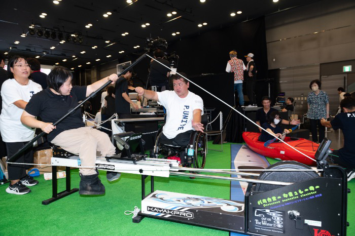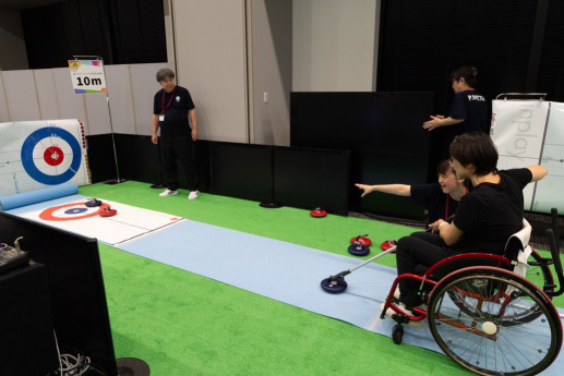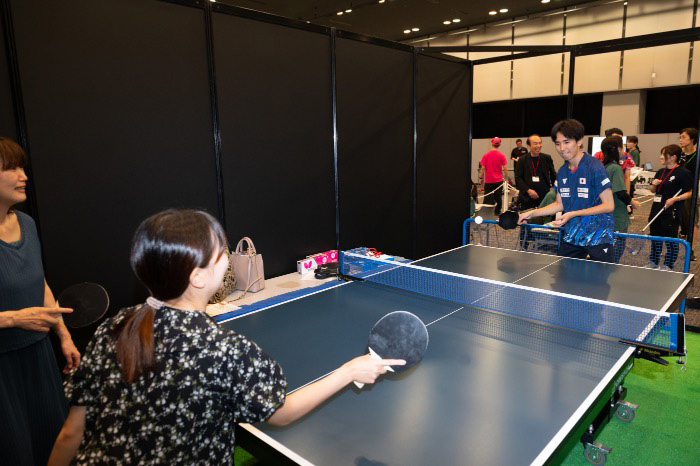 一部のブースではパラアスリートと一緒に体験ができる時間もあり、来場者が次々とパラアスリートに挑戦しました。