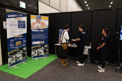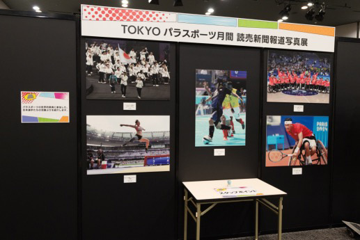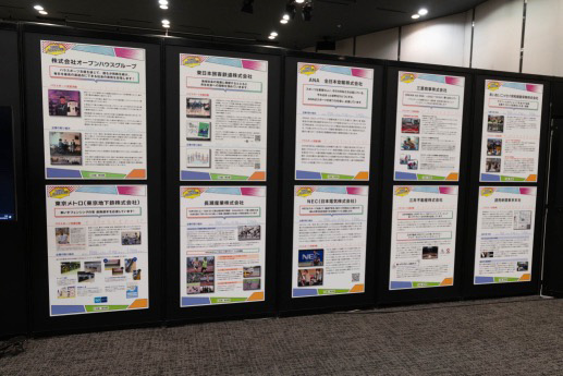 企業の取組展示では、都内のビジネスパーソンやオフィスを利用する方々にパラスポーツに触れていただいた企画「オフィスdeパラスポット」で使用したパネルを紹介しました。パラスポットを提供いただいた10社の取組は、こちらからご覧いただけます。