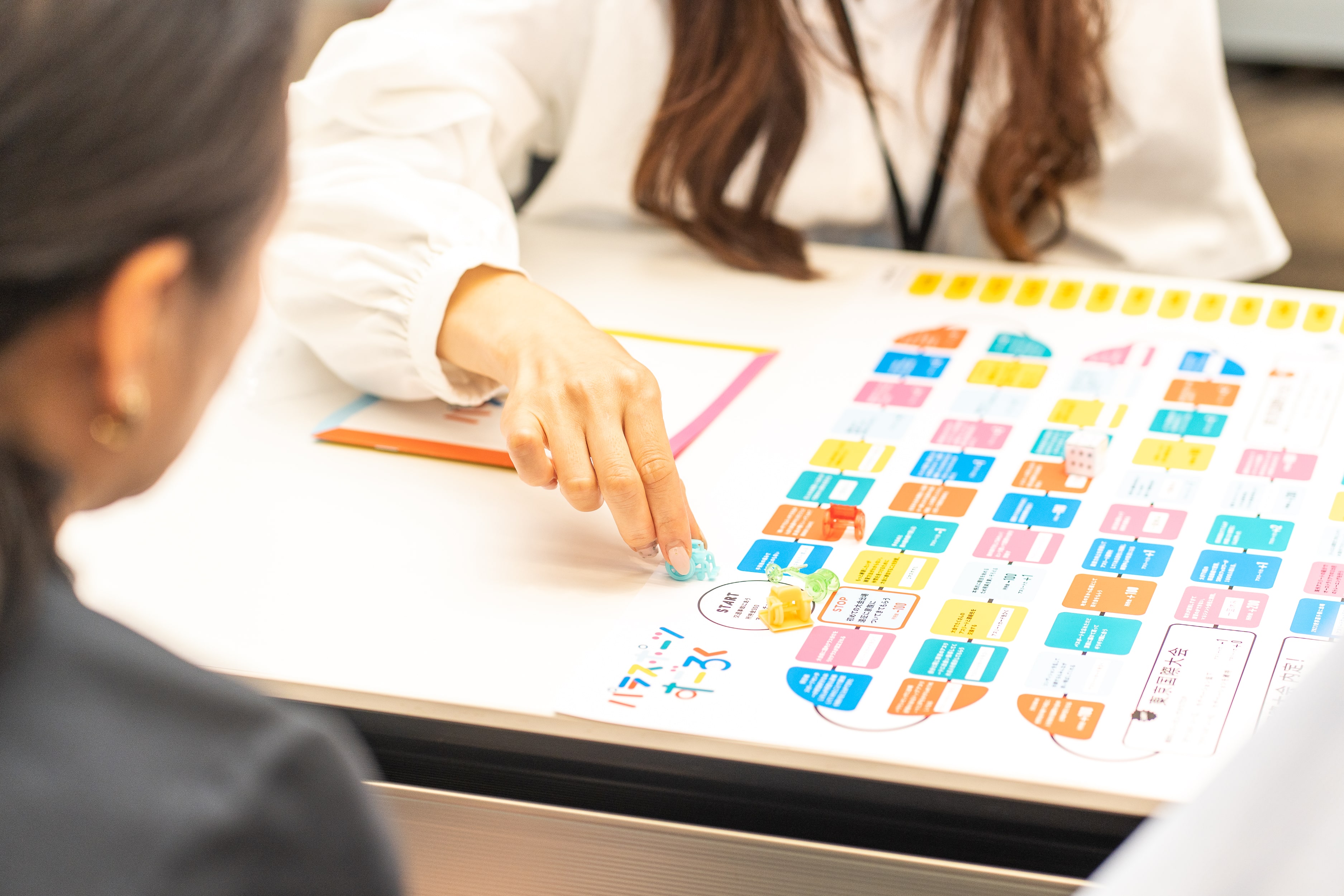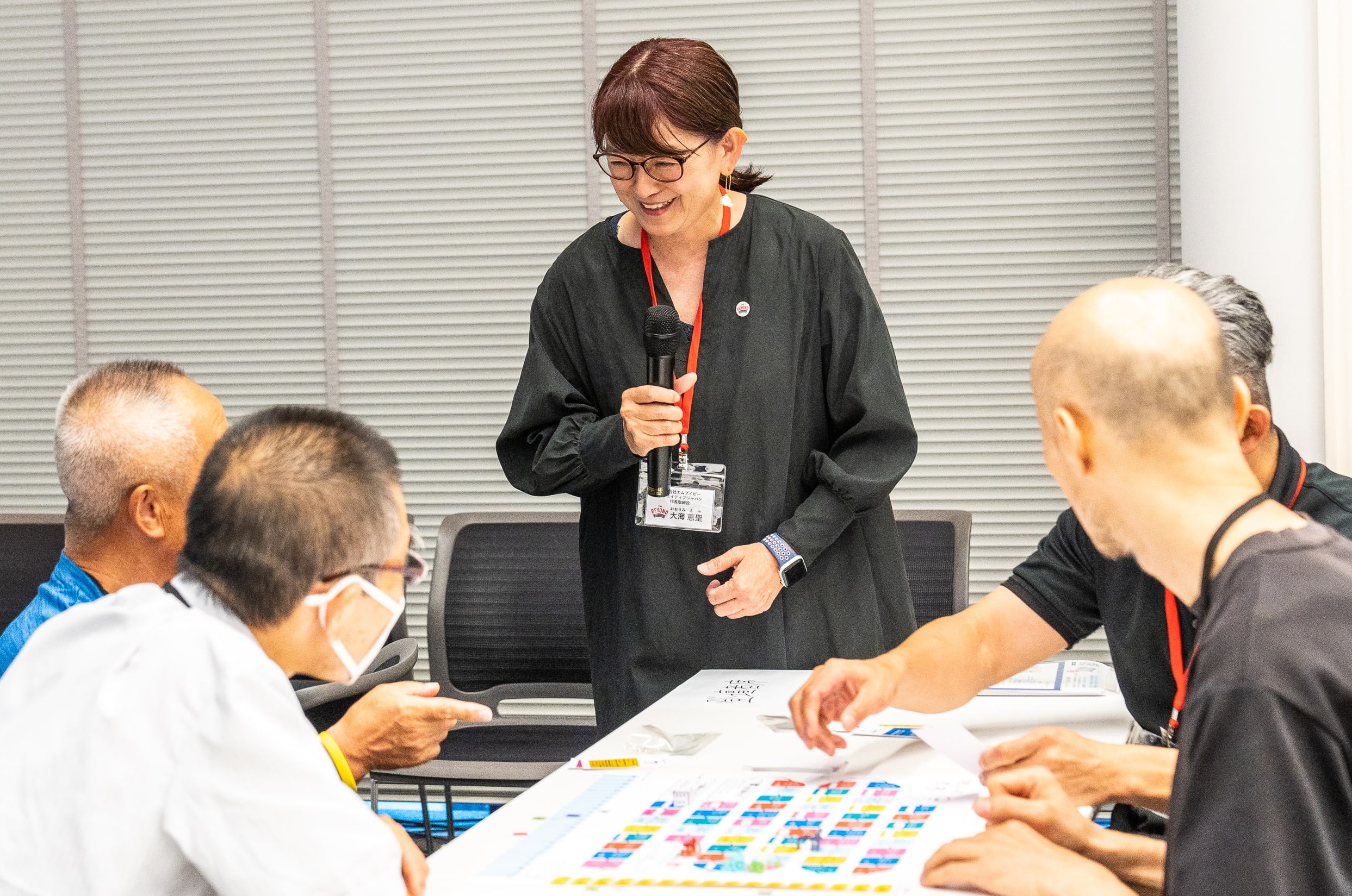 体験に移ると、大海氏の明るく軽快なスピーチとともに、参加者は各テーブルに用意されたすごろくを4人ずつで囲み、パラスポーツすごろくを楽しみました。