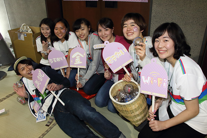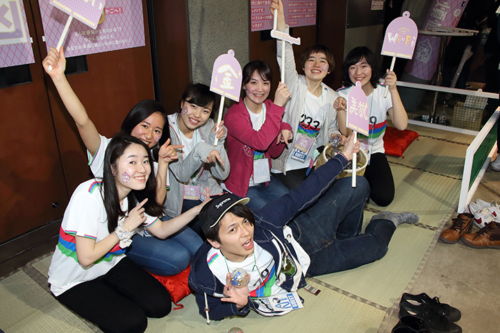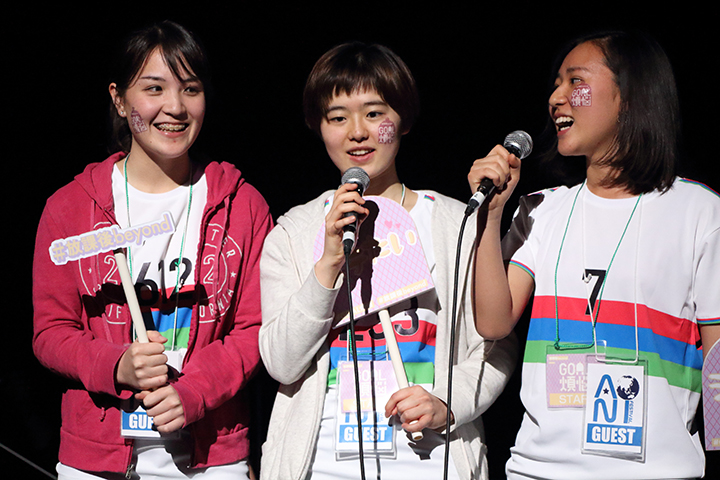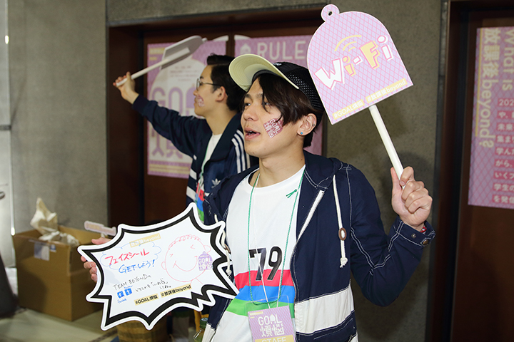 メンバーは、ステージ上でも「放課後BEYOND」の活動を紹介、「ゴール煩悩」の楽しさや気軽さ、⾯⽩さを元気よくアピールすることに成功していました。一生懸命な彼らの姿に会場からの声援も多く、大勢の人が彼らの活動に興味を持ってくれたことでしょう。アピールを終え、ブースに戻ったメンバーは引き続き、通りかかる人に「ゴール煩悩」の体験を精一杯呼びかけており、ブースの周りは最後まで大いに盛り上がっていました。