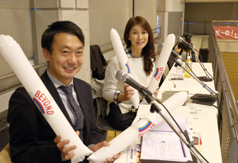 栄えある優勝チームが決定する11日、今大会では、TEAM BEYONDの協力の下、初めての試みとして、決勝戦のショーアップ演出を実施。スタジアムDJの高森浩二さんのMCで、元全日本代表の益子直美さんと、一般社団法人日本パラバレーボール協会代表理事の真野嘉久さんによる実況解説が行われました。