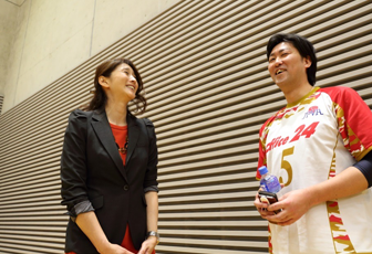 今回の体験会を開催した「株式会社オフィス24」広報室の吉原道臣さんにもお話を伺いました。吉原さんは、投手として横浜ベイスターズに所属していたこともある元プロ野球選手。試合中、まるでバックアタックのような強烈なサーブを打ち込み、益子さんから「反則だ~」と責められていました。 「弊社は、シッティングバレーボール日本代表チームをサポートしています。日本代表選手団に対して海外遠征や強化合宿のサポートを積極的に行うことも、活動の一環です。シッティングバレーボールの最大の魅力は、健常者も障がい者も関係なく、一緒に楽しむことができるところです。それをより多くの方にお伝えするために、月に一度、日本代表監督や選手の方に協力してもらって、体験教室を開催しています。もちろん、社内にチームもあります」 吉原さん自身、中学の3年間、バレーボール部に所属していたそうです。「シッティングバレーボール歴は2年ですが、難しいものですよね、最初はうまく動けなくて。悔しくて一生懸命練習しました。コートが狭いこともあって、選手同士のコミュニケーションがとりやすいんです。仲間づくりにぴったりのスポーツだと思いますよ」と語ってくれました。