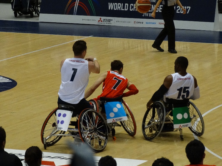 私が観戦したのは、「三菱電機 WORLD CHALLENGE CUP 2017」、イギリス対日本の試合です。試合前に競技用の車いすを体験させていただく機会があったので、その体験も踏まえて、観戦記を書きたいと思います。