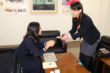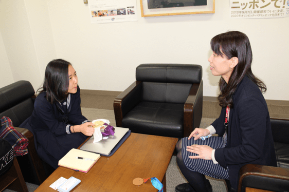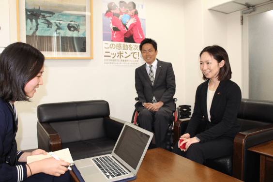アットホームな雰囲気のオフィス。たまたま現地にいらっしゃった女子ゴールボール競技の浦田選手と男子車いすテニス競技の川野選手にも取材することができました。