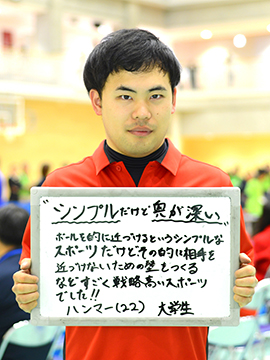 出場した大学生に、ボッチャの魅力をホワイトボードに書いてもらいました。